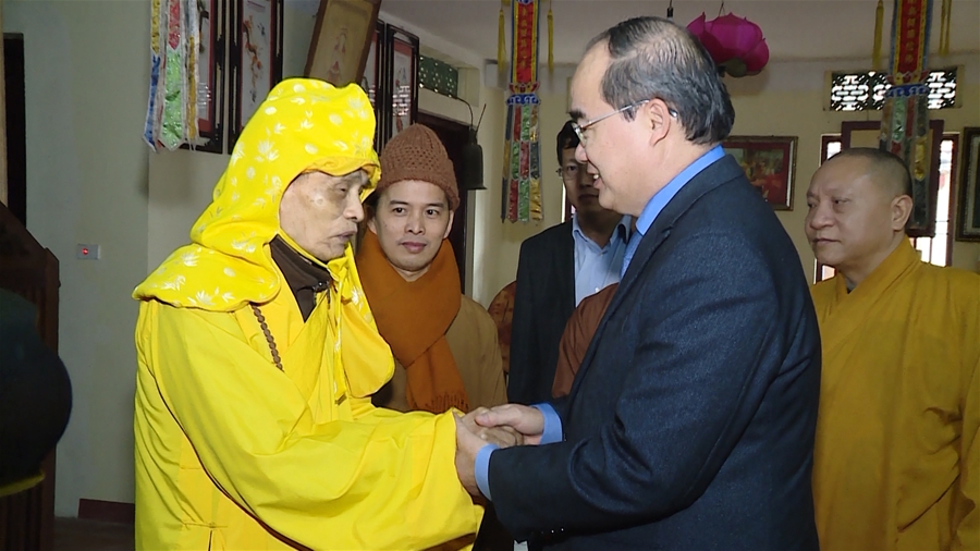 (vovworld) - ເນື່ອງໃນໂອກາດບຸນເຕັດປີລະກາ 2017, ຕອນເຊົ້າວັນທີ 24/01 ທ່ານ ຫງວຽນທ້ຽນເຍີນ ກຳມະການກົມການເມືອງ, ປະທານຄະນະກຳມະການສູນກາງແນວໂຮມປະເທດຊາດ ຫວຽດນາມ ໄດ້ລົງຢ້ຽມຢາມ ແລະ ສົ່ງພອນໄຊອັນປະເສີດທີ່ສຸດເຖິງ ພະມະຫາອາຈານ ທີກໂຟເຕ້ ປະທານສະມາຄົມພຸດທະສາສະໜາ ຫວຽດນາມ ພ້ອມດ້ວຍບັນດາຜູ້ມີຍົດຖາບັນດາສັກການນຳສະພາສົງ ແລະ ສະພາບໍລິຫານສະມາຄົມພຸດທະສາສະໜາຢູ່ວັດ ວຽນມິງ ຕາແສງ ກວາງຫລາງ, ເມືອງ ຟູ໋ຊວຽນ ນະຄອນ ຮ່າໂນ້ຍ. ທ່ານ ຫງວຽນທ້ຽນເຍີນ ສົ່ງຄຳອວຍພອນເຖິງ ສະພາສົງ, ສະພາບໍລິຫານສູນກາງ ສະມາຄົມພຸດທະສາສະໜາ ຫວຽດນາມ ແລະ ພຸດທະສາສະນິກກະຊົນໃນທົ່ວປະເທດ ພ້ອມທັງເຊື່ອໝັ້ນວ່າ ສະມາຄົມພຸດທະສາສະໜາ ຫວຽດນາມ ຈະສືບຕໍ່ຮັກສາ, ເສີມຂະຫຍາຍມູນເຊື້ອອັນດີງາມ, ເຂົ້າຮ່ວມ ໃນບັນດາຂະບວນການແຂ່ງຂັນຮັກຊາດ ໂດຍຄະນະກຳມະການສູນກາງແນວໂຮມປະເທດຊາດ ຫວຽດນາມ ປຸກລະດົມຢ່າງຕັ້ງໜ້າ; ປະກອບສ່ວນຢ່າງແທດຈິງເຂົ້າໃນການປັບປຸງ, ເພີ່ມທະວີກຳລັງແຮງມະຫາສາມັກຄີທົ່ວປວງຊົນທັງຊາດ, ເພື່ອຄວາມຮັ່ງມີຂອງປະຊາຊົນ, ປະເທດຊາດເຂັ້ມແຂງ, ປະຊາທິປະໄຕ, ຍຸຕິທຳ, ສີວິໄລ.
