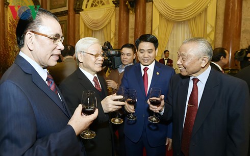 (ທ່ານເລຂາທິການໃຫຍ່ຫງວຽນຟຸຈ້ອງອວຍພອນບຸນເຕັດການນຳ,