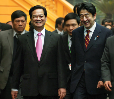 ![]() ທ່ານນາຍົກລັດຖະມົນຕີຫງວຽນເຕີນຢູງ ແລະ ນາຍົກລັດຖະມົນຕີ ຍີ່ປຸ່ນ Shinzo Abe
