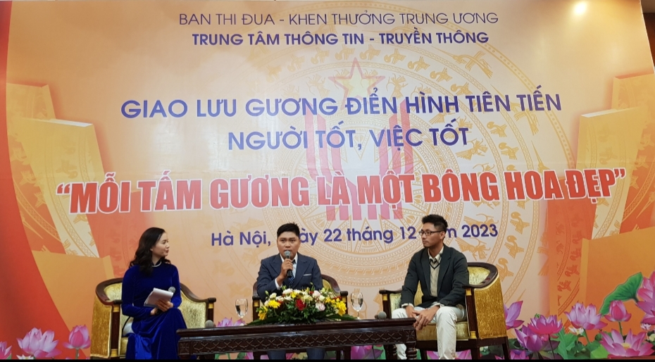 ອ້າຍ ຫງວຽນມິງກ່ຽວ ທີ່ການພົບປະແລກປ່ຽນ "ວຽກເດັ່ນຄົນດີ" ຢູ່ ນະຄອນຫລວງຮ່າໂນ້ຍ. ພາບ: Ngoc Anh |