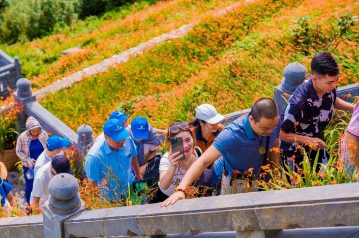 | Visitors to the 2024 Crocosmia Flower Festival not only immerse themselves in the splendid blooming flowers but also enjoy the exciting festive atmosphere. (Photo: baotintuc.vn) |