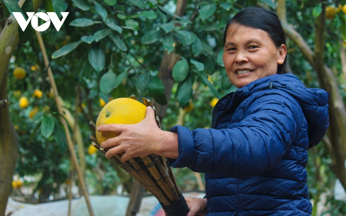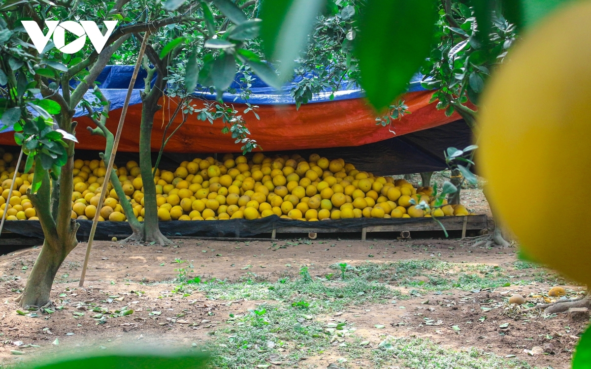 Mai Hoa, who has planted pomelo trees for 27 years in Phu Dien ward, says customers begin to order from December, with this year seeing pomelos cheaper than in previous years due to the impact of the novel coronavirus (COVID-19) pandemic. |