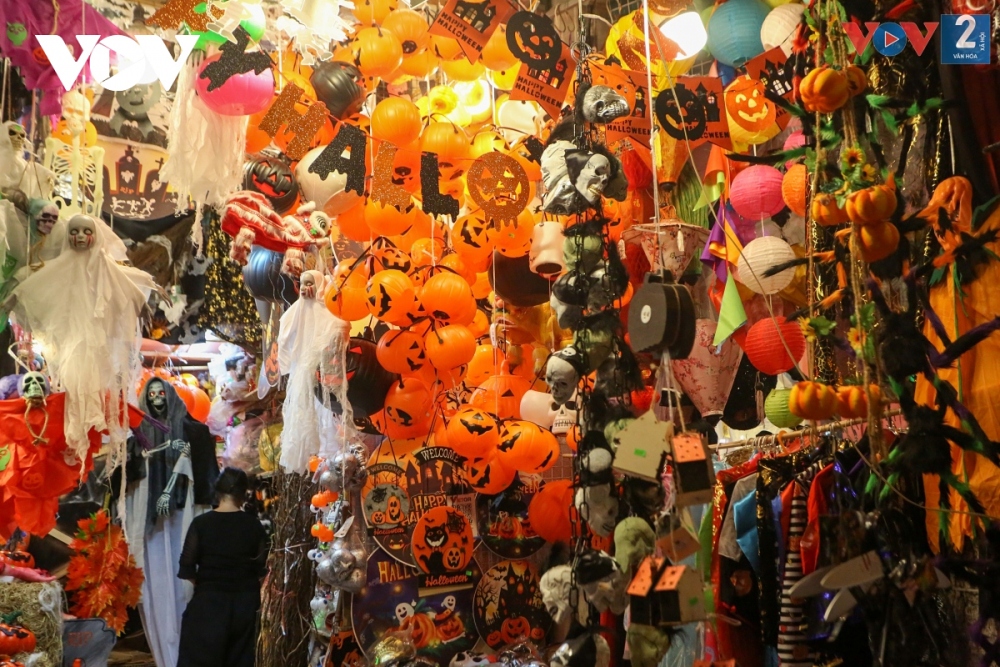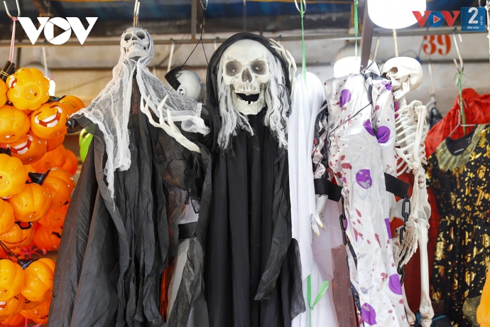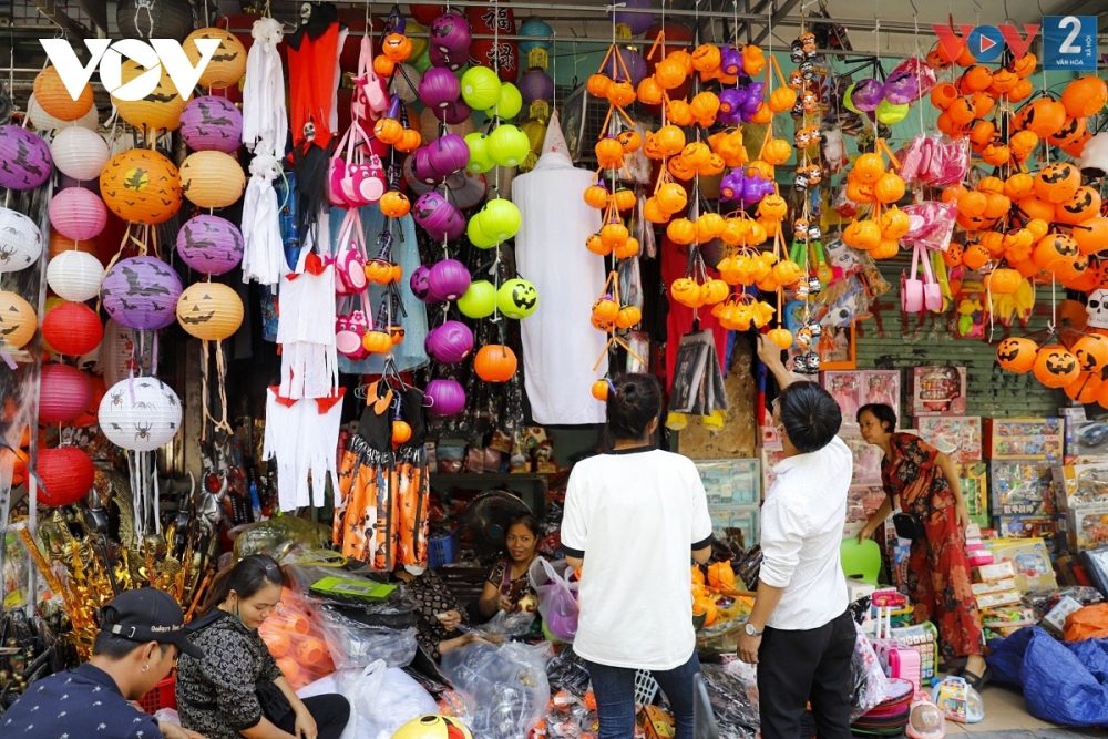 The most popular items are pumpkin-shaped candy baskets and decorated pumpkin lanterns, costing from VND70,000 - 150,000 each, while simple masks cost from VND30,000-60,000/piece, and ghost masks cost from VND120,000-350,000/piece depending on size.