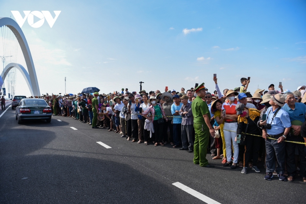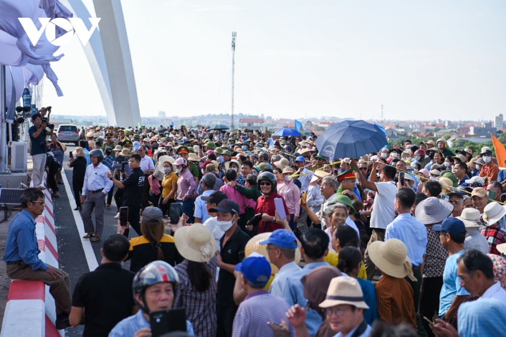 Crowds of local people partake in the inauguration ceremony of Kinh Duong Vuong bridge.