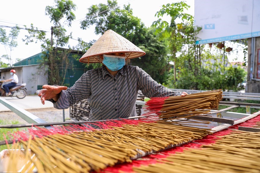 Incense-making workshops in Quang Phu Cau resume their operation after nearly two months of business disruption due to social distancing. (Photo: VNA) |