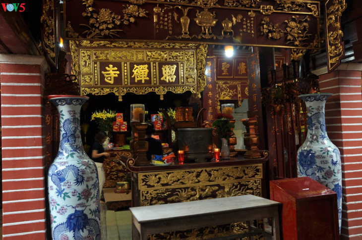 A lacquered board reminding visitors of the reincarnation of the Buddhist bonze Tu Dao Hanh |