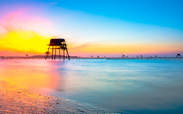 Although the beach is not suitable for bathing, it still attracts lots of visitors who want to see and learn about clam farming. |