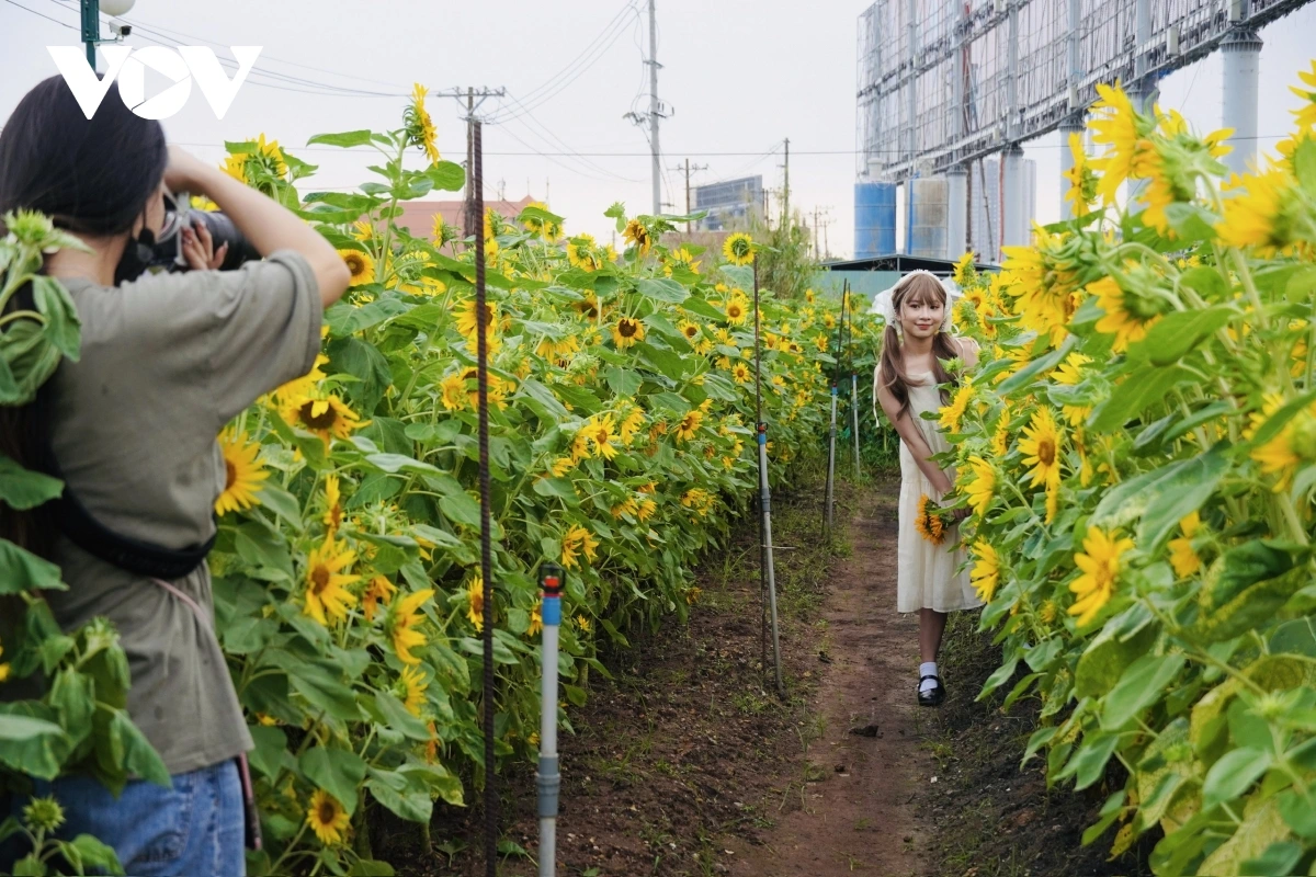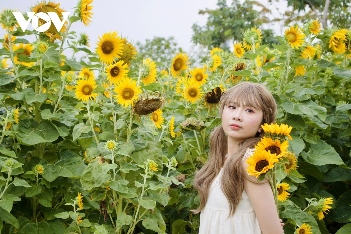 Xuan Nhi, 21, from Long An province, shares that she wants to keep wonderful moments with beautiful sunflowers through photos as a way to maintain memories of her youth. |