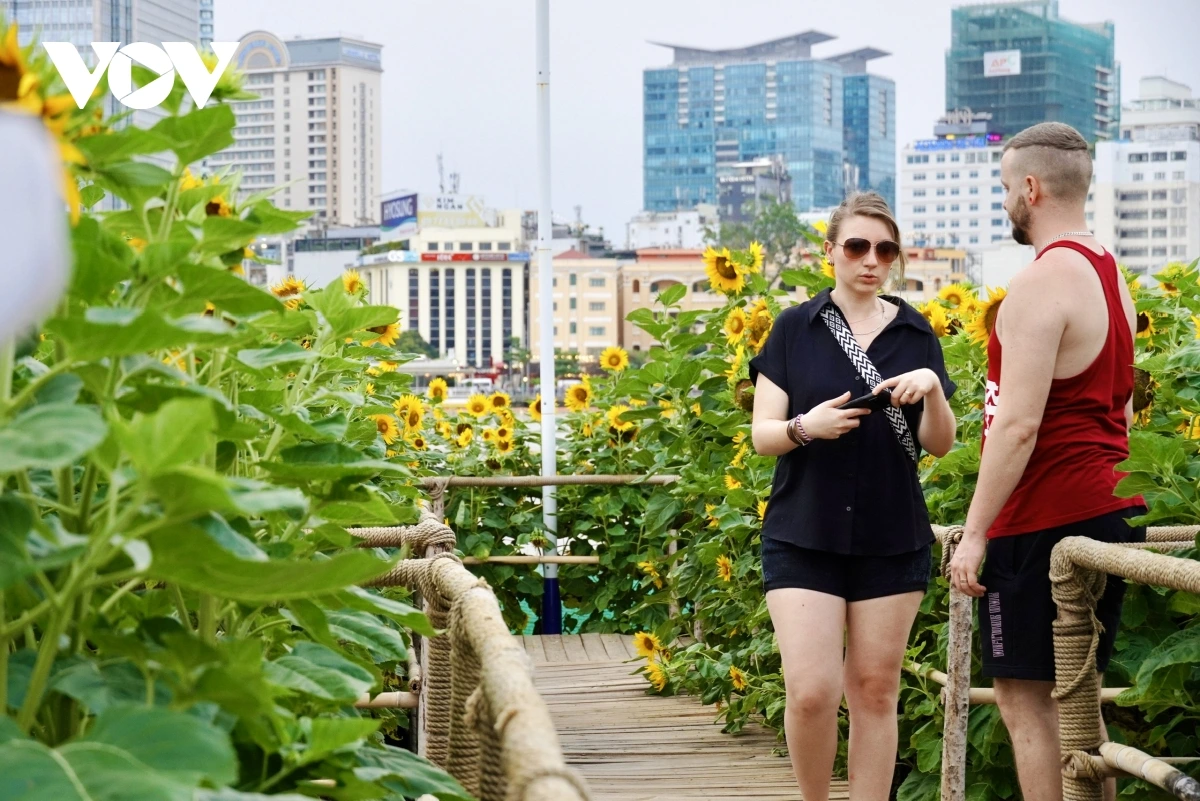 Some 18,000 sunflowers are stretching along the Saigon River Park. |