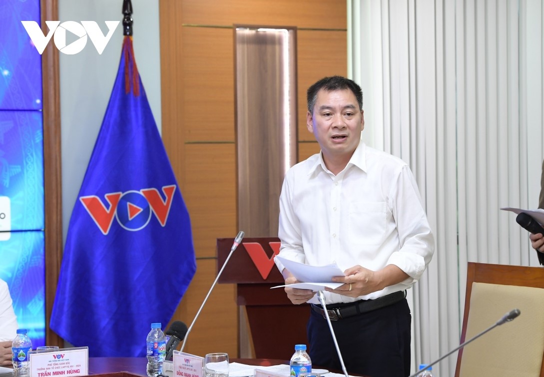 Dong Manh Hung, Head of VOV’s Secretariat and Editorial Department, tells reporters about the 16th National Radio Festival. Photo: Ha Phuong/VOV