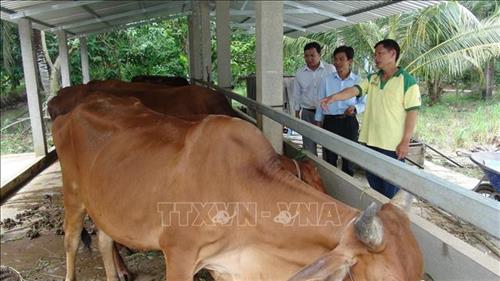Mr. Huynh Van Det shares his cow raising experience with other farmers. (Photo: Huynh Phuc Hau/ VNA) |