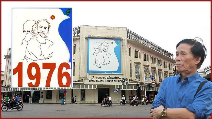 The painting "Uncle Ho with children" has hung for more than 40 years on the rooftop of the city's information house, at 93 Dinh Tien Hoang street in the Old Quarter, symbolizing Hanoi, the city of peace.