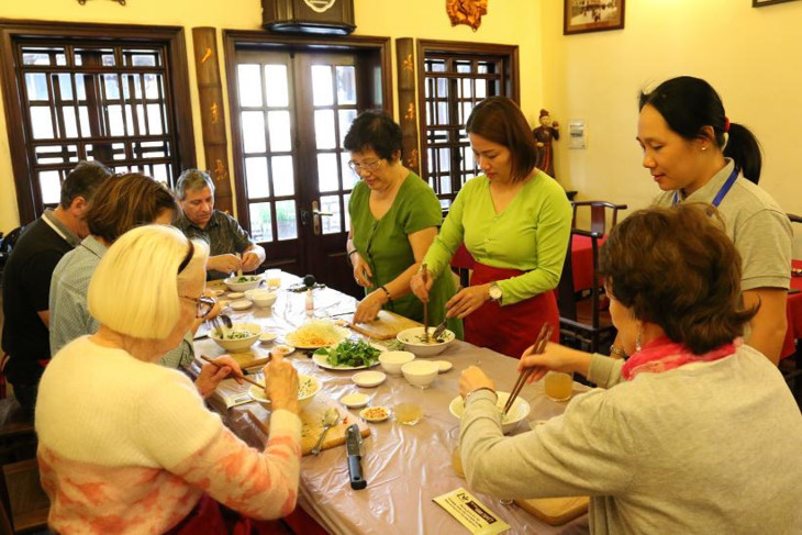 Ms. Tuyet has been in charge of the food at many banquets hosted by the Vietnamese government for foreign guests, and has been invited to cook at culinary events in foreign countries. Tuyet also organized cooking classes for foreigners.
