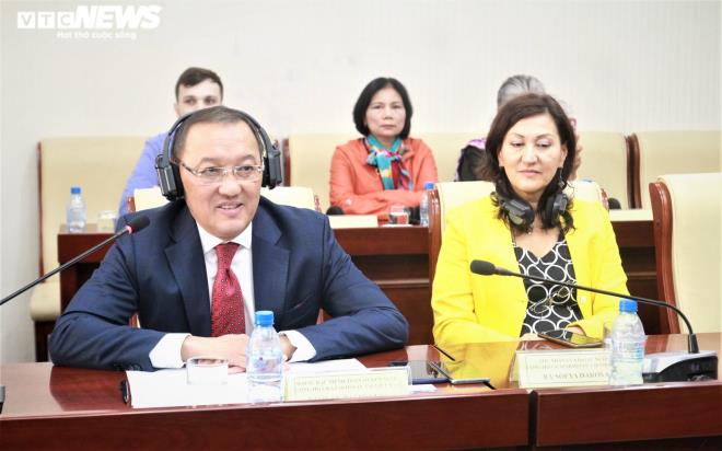 Полномочный посол Республики Казахстан во Вьетнаме Байжанов Ерлан Сапарович выступает на церемонии президентации перевод "Слова назидания Абая" на вьетнамском языке. Фото: Minh Tuаn |