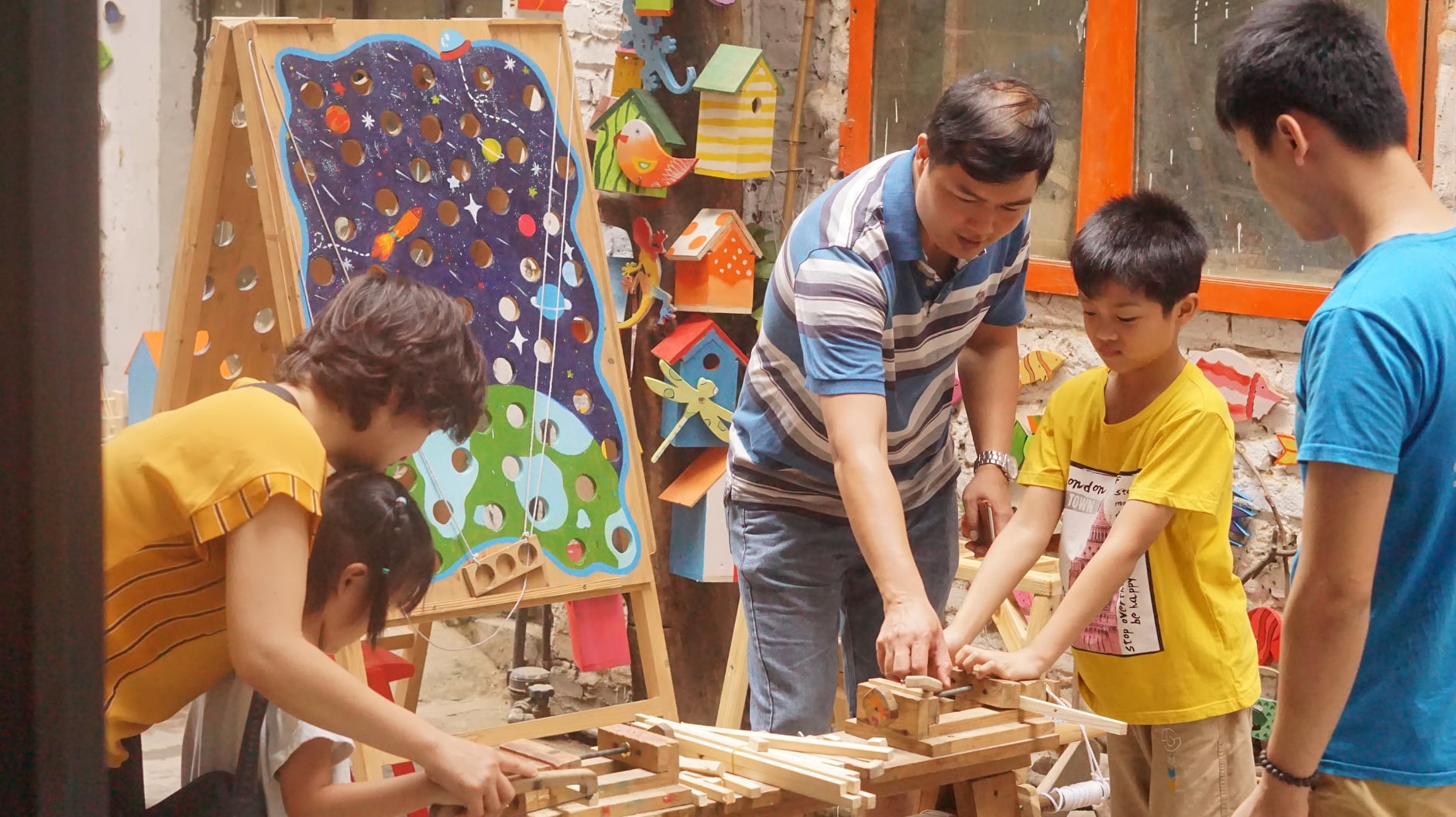Находясь на территории «STEAM Valley» площадью более 1000 кв.м на улице Хоангкау Ханоя, Креатив-гараж не является обычным столярным цехом, где производятся мебель и деревянные изделия. Это столярный цех для детей. Здесь дети от 3 до 12 лет могут самостоятельно использовать столярные инструменты, чтобы делать любимые вещи.
