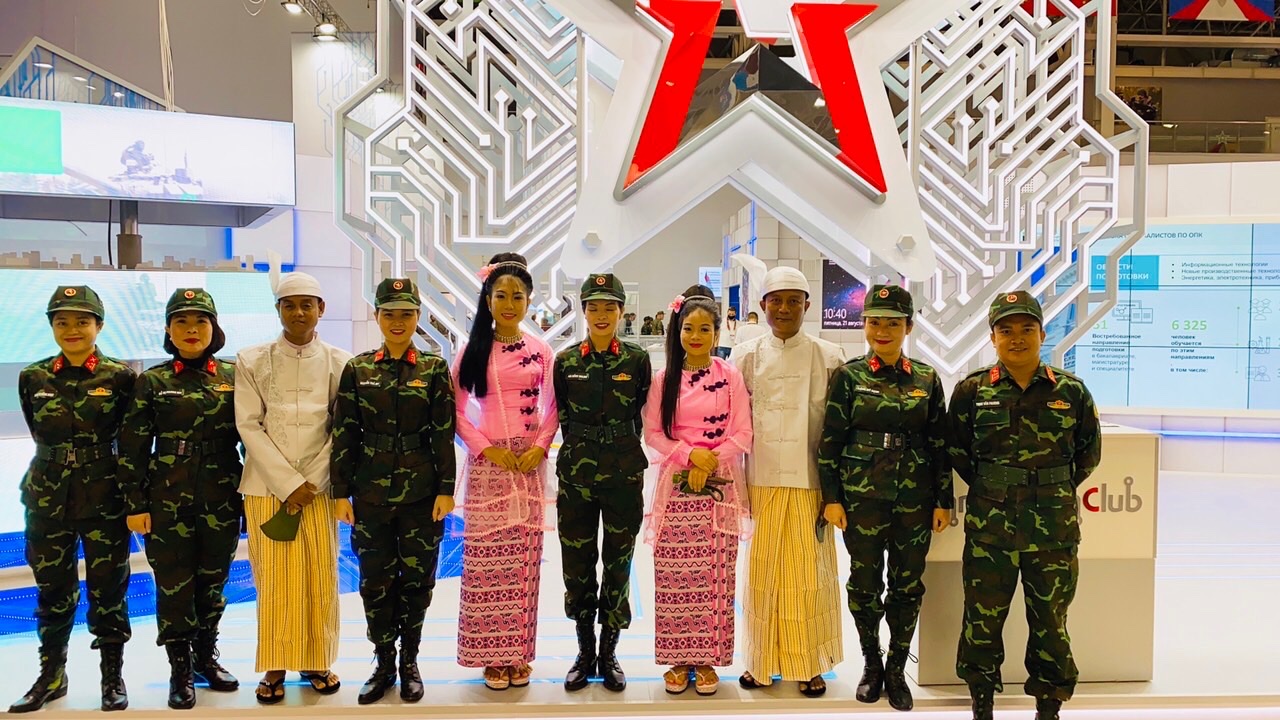 Чинь Фыонг (справа), артисты Вьетнамской народной армии и аристы из друг стран, участвующие в АрМИ-2021