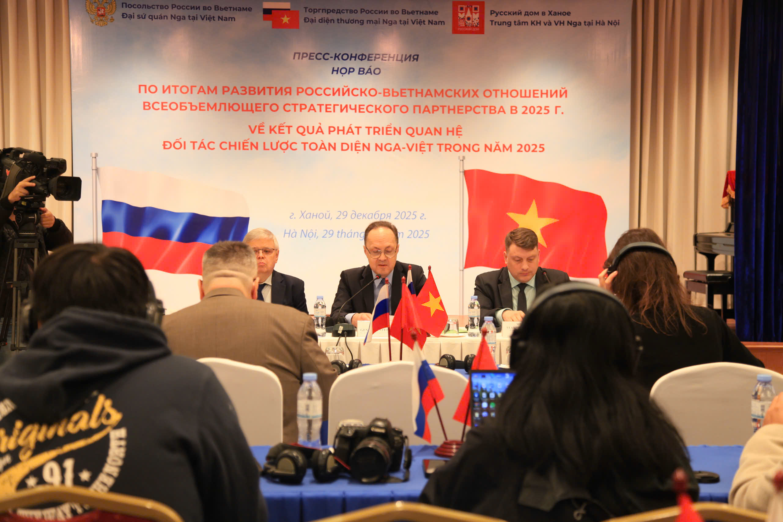 Пресс-конференция, посвященная итогам развития российско-вьетнамских отношений в 2025 г. Фото: Русский дом в Ханое |