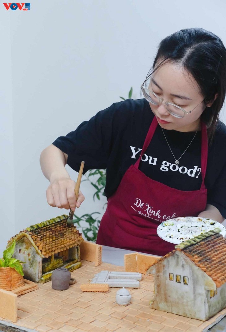Когда Тхюи Зыонг делает этот лунный пирог, она придает ему уникальную форму с изображением типичных сельских пейзажей. Она сказала: «Я родилась в деревне, расположенной на севере Вьетнама. Образы черепичных крыш, дворов, мощенных кирпичом, мшистых стен, деревьев арека, растущих перед домом, стали впечатлениями, которые я никогда не забуду».