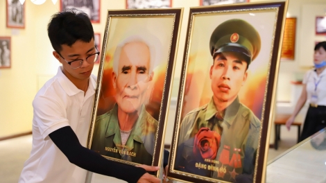 (VOVWORLD) - Группа «Team Lee» в составе 12 молодых людей из многих провинций и городов страны, занимается обработкой фотографий и реставрацией портретов павших солдат. Этот некоммерческий проект реализует группа «Team Lee» с целью облегчить душевную боль от войны у родственников и семей павших фронтовиков. По случаю празднования 70-летия Победы в битве при Дьенбьенфу (7/5/1954 - 7/5/2024), члены группы «Team Lee» осуществили поездку в провинцию Дьенбьен и передали в дар местному Музею победы Дьенбьенфу 30 реставрированных портретов 30 героев народных вооруженных сил, сражавшихся в операции при Дьенбьенфу.
