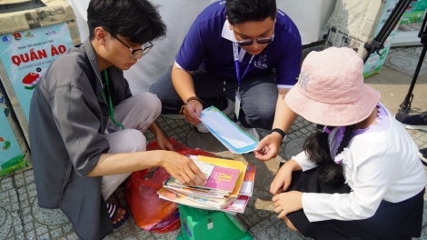 (VOVWORLD) - После учебного года старые книги обмениваются на экологически чистые предметы, такие как растения, тканевые мешки и т. д.. Собранные книги будут классифицированы и затем переданы детям, оказавшимся в трудной жизненной ситуации. Это ежегодное мероприятие благотворительной группы Fly to Sky, которое проводится на протяжении последних 6 лет.