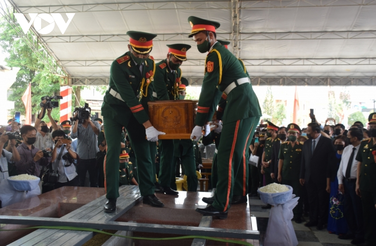 The remains of 60 martyrs who laid down their lives at Xuan Son hill were recovered and brought to a local cemetery (Photo: VOV) |