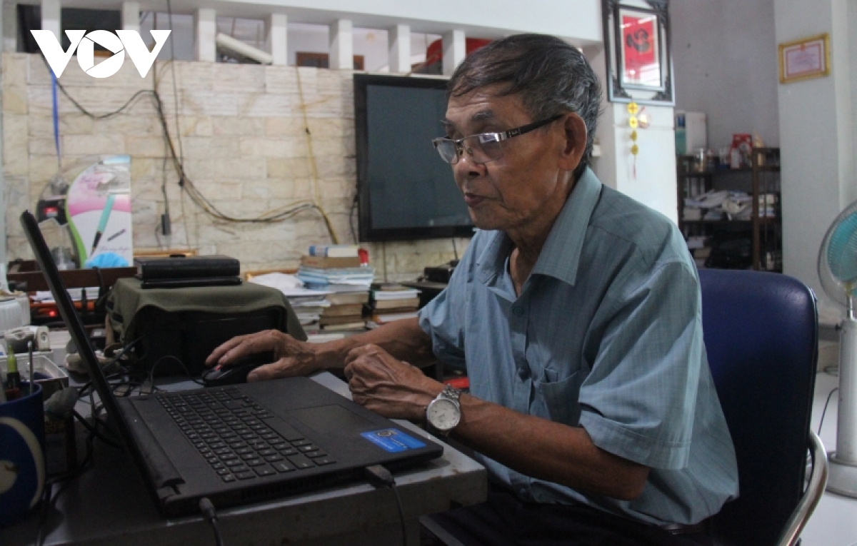 War Veteran Dang Ha Thuy studies documents related to the fight in Xuan Son hill, Hoai An district, Binh Dinh province in 1966 (Photo: VOV) |