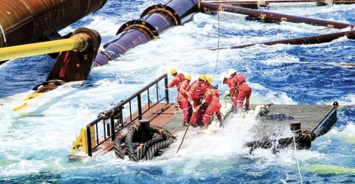Vietnam’s oil and gas workers prepare to install an offshore drilling rig. |