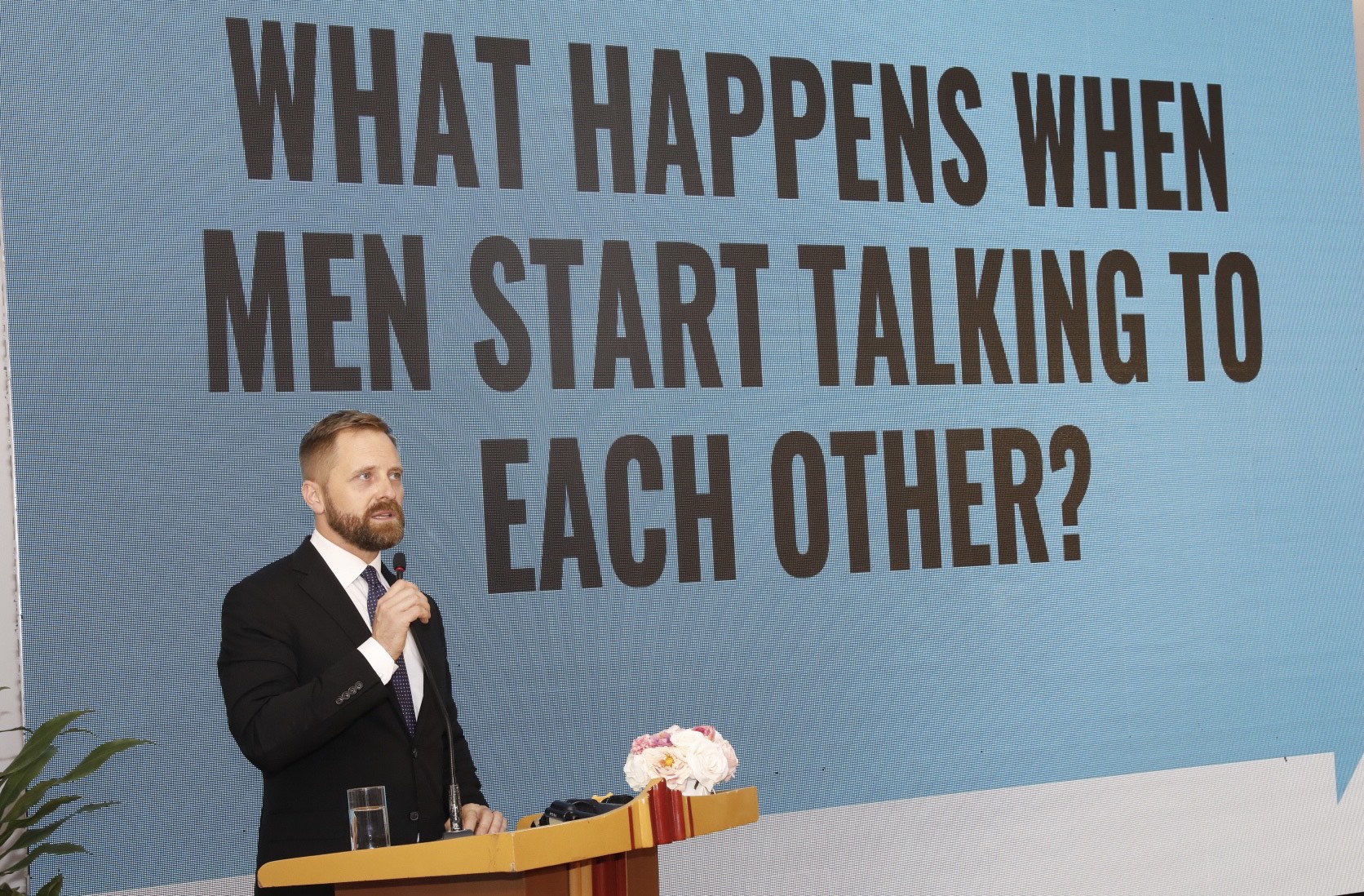 Ambassador Ann Måwe: I mean the program was started as a grass root movement in Sweden. It was men who formed groups to start to talk about masculinity and how really, you can be loving and caring and present an equal and responsible person in relation to your spouse or your children and so on. From a governmental point of view, we saw this was a really good initiative. We wanted to share this initiative to see if there was an interest in other countries. So it's now rolled out in Swedish embassies around the world. And they have started in Albania, in Kenya, and now we have Vietnam and Turkey and a few other countries coming up. What we really want to explore is if there is an interest in doing this kind of activity, I can envisage that this kind of conversation could pop up in a workplace, in the bia hoi place, in the cafe, or even in the sports team to pursue global guys talk.