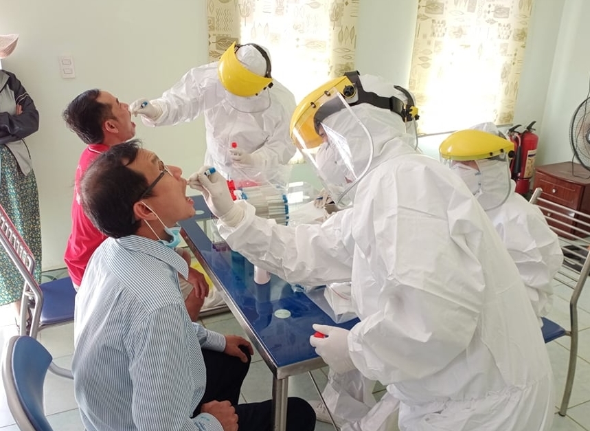 Throat and nasal swab samples are collected for COVID-19 PCR testing of workers at Binh Son Refining and Petrochemical Joint Stock Company (BSR) (Photo: Petrovietnam) |