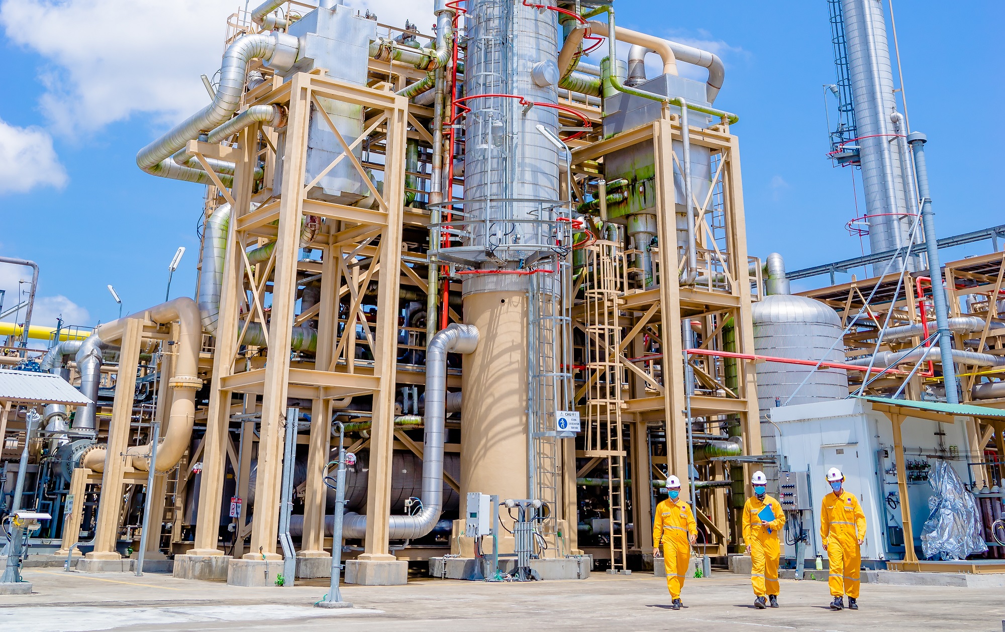 Workers of Phu My fertilizer plant wear face masks at work. (Photo: Petrovietnam) |