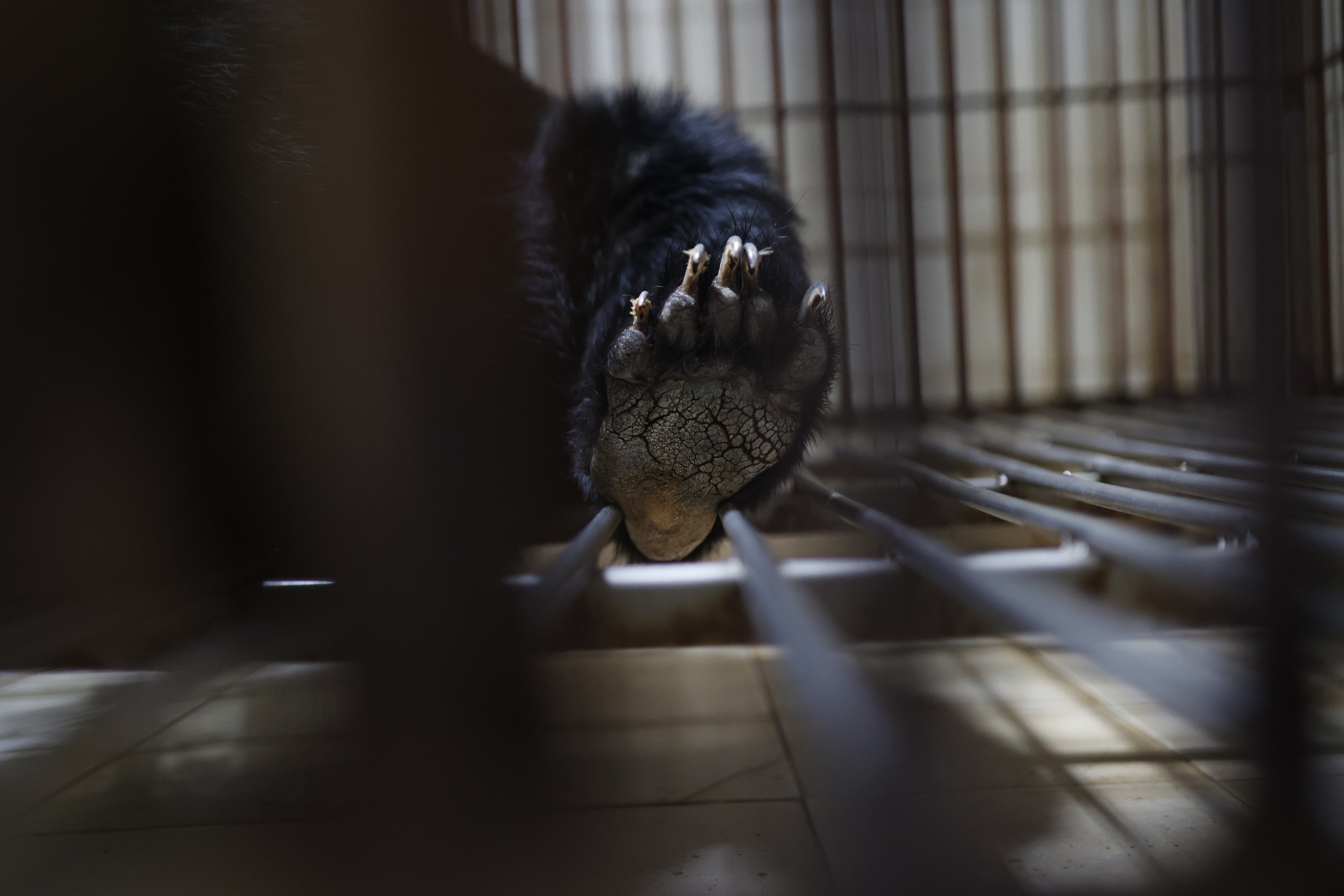 When the team arrived in Ho Chi Minh City, they were led to a dimly lit, warehouse-like room, with concrete on all four sides, and in a corner a rattling steel cage containing a 150kg female Asiatic black bear.