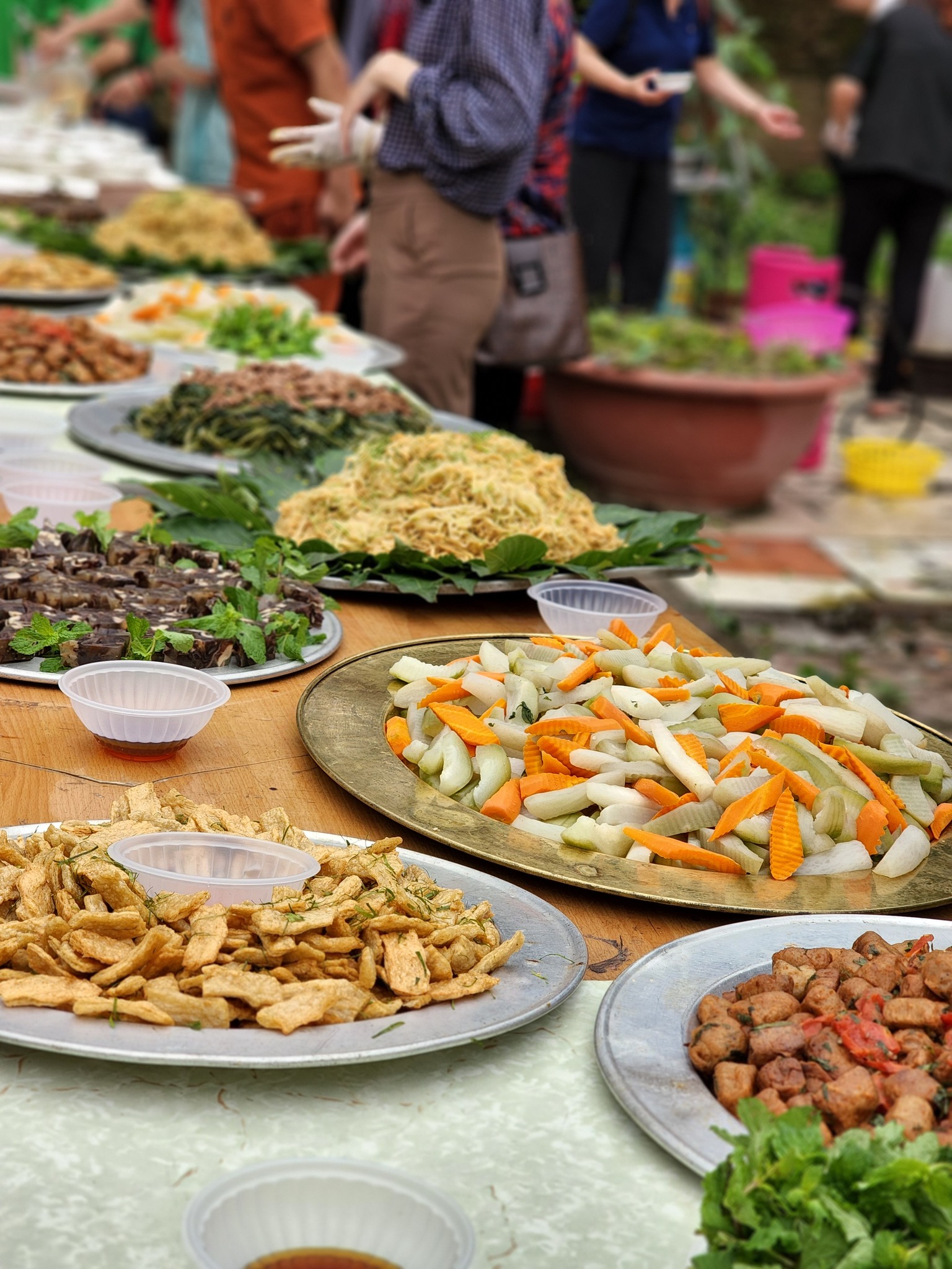 Traditional dishes like Bún and Phở were served along with a variety of vegan dishes made from meat-free ingredients including vegan sliced chicken made from mushroom starch, stir-fried morning glory, boiled vegetables, and vegan lean pork paste. Also, the utensils used at the event were environmentally-friendly products recycled from sugar cane bagasse.