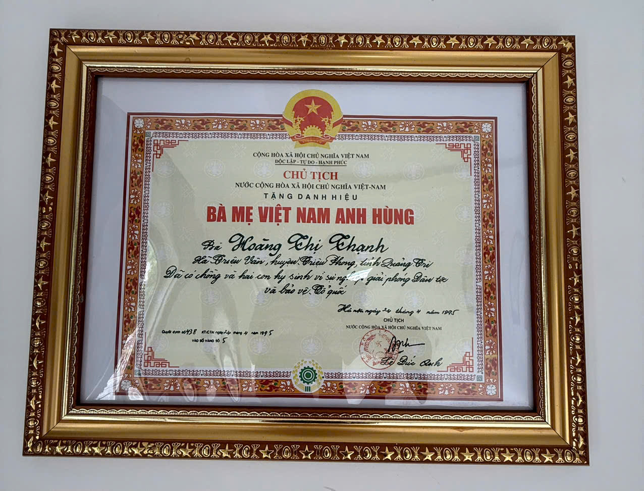 Phoi’s mother, Hoang Thi Thanh, is honored as a Heroic Vietnamese Mother in 1999. |