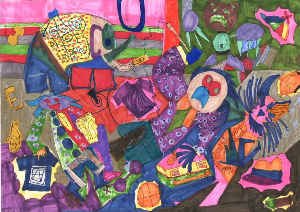 The exhibit is full of colorful paintings and paper-mache figures, all made by little artists who want to show off their inner worlds to others.