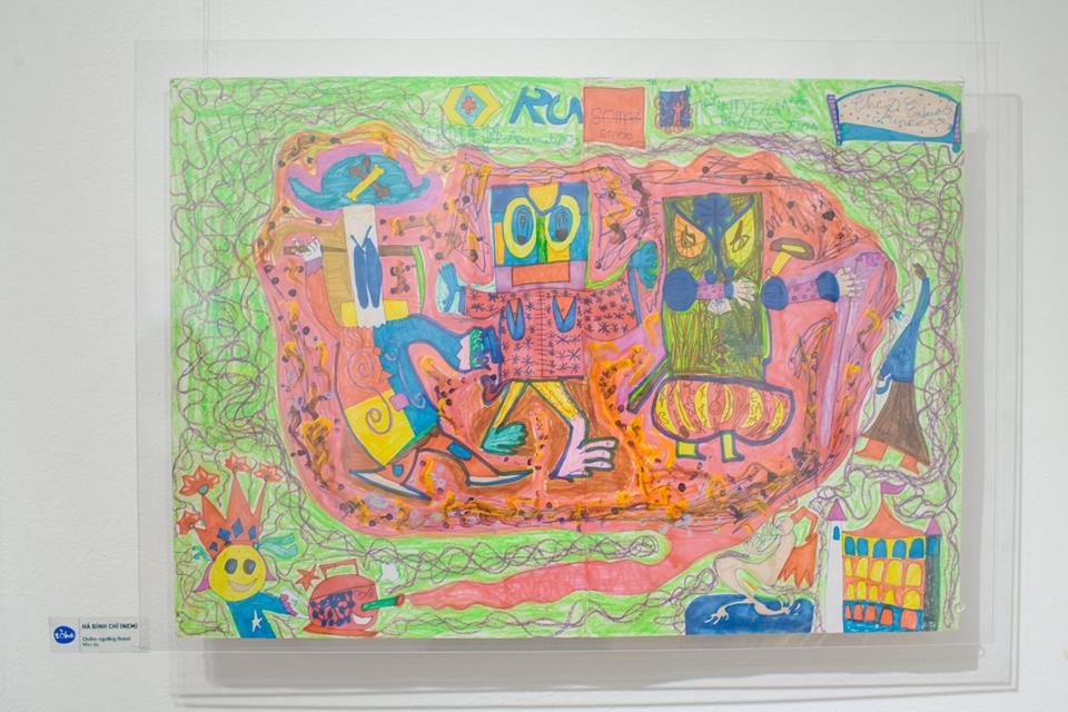 Le Ngoc Thu is the mother of Van Minh Duc, whose work is on display in this exhibit. She told us: “Duc loves drawing so much. When he gets angry and can’t control his emotions, drawing is the solution. You just need to give him paper and crayons. He will sit there and draw immediately. All sadness or bad emotions will be gone when the picture is finished.”
