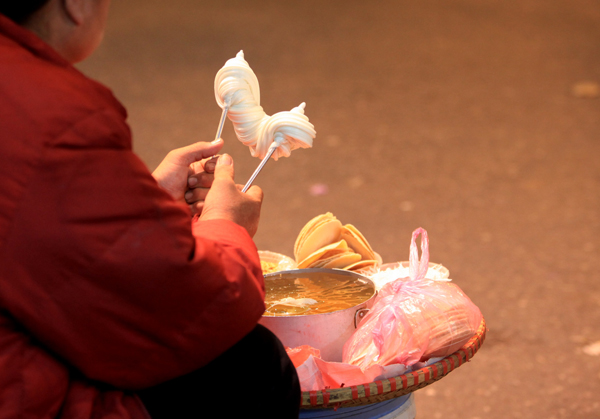 It’s not necessarily complicated dishes that attract the tourists. Simple traditional food like Vietnamese “stretching candy” or kẹo kéo, is sold from a colorful cart, with a big umbrella. The name of this candy describes it exactly. The longer you stretch it, the thinner the candy! Richard, a French tourist, couldn’t hide his excitement: "It’s a white paste, with some coconut, stripe, I would say, and peanuts. This is really unusual for us. We like candies a lot and this is great to taste it tonight in Hanoi. Actually, this is the 3rd day we spent in Hanoi and we’ve been walking around here also for the third time. We’ve just had hot pot, which is delicious. And we really like Asian food, particularly Vietnamese food"