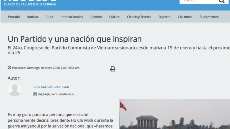(VOVWORLD) - Juventud Rebelde (Rebel Youth), the official newspaper of the Young Communist League of Cuba, has published a commentary highlighting the importance of the 14th National Congress of the Communist Party of Vietnam, describing Vietnam as an inspiring model for national construction and development.