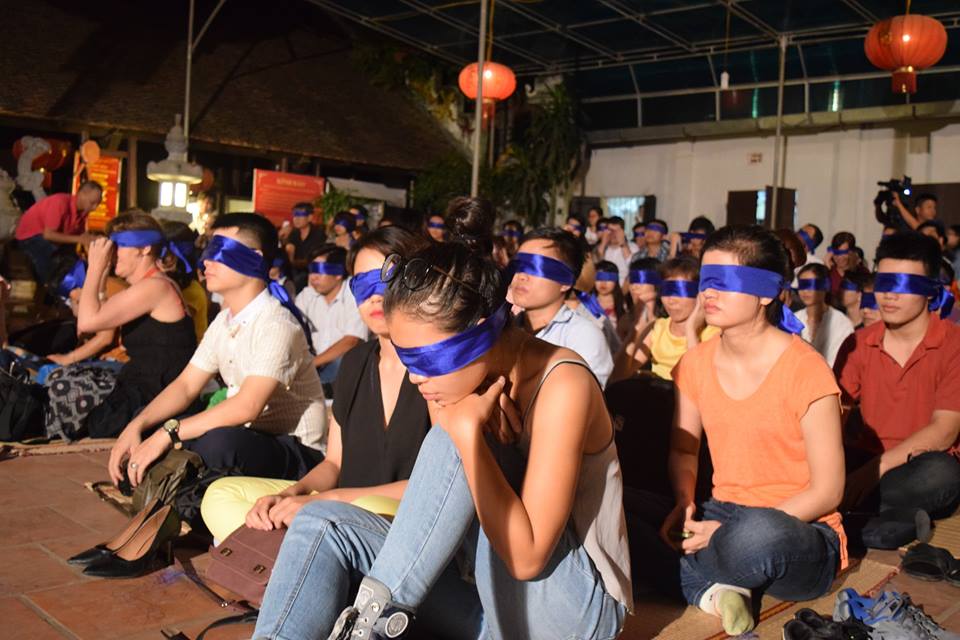 Despite scattered rain showers, the back yard of the Hao Nam communal house was already full of people young and old, Vietnamese and foreign. The audiences sat on mats, creating a closeness and warmth between the audience and artists. People were eager to see the artists and listen to traditional Xam songs while blind-folded, a unique way to experience the features of the art form. All the participants were quickly fascinated by the art when the artist raised his voice. There seemed to be an invisible connection between the performers and the audience. Xuan Phong elaborated: “The stories told in Xam are those of life. Among traditional Vietnamese art forms, Xam is considered something that’s very simple and a familiar part of normal life. The artists sing like they are talking to their audiences. Xam songs are diverse in content, some praise love, family bonds, some tell stories of people’s lives. Through the performances, we want to raise awareness of people of the prized tradition of Xam singing”