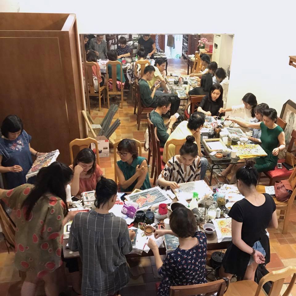 It’s a beautiful Sunday afternoon. Some dry weather has arrived just in time for Mother's Day, which is celebrated on the second Sunday of May. I’m browsing the gift shops on Kim Ma Street hoping to find something special with which to surprise my mom. But two hours of fruitless searching has left me feeling sad and discouraged. I turn into alley 371 and spy a small boutique named “Linh Tran Design House”, where beautiful hand-dyed fabrics adorn the walls. Linh Tran, the boutique’s owner, is holding a workshop on using natural dyes to paint on silk.