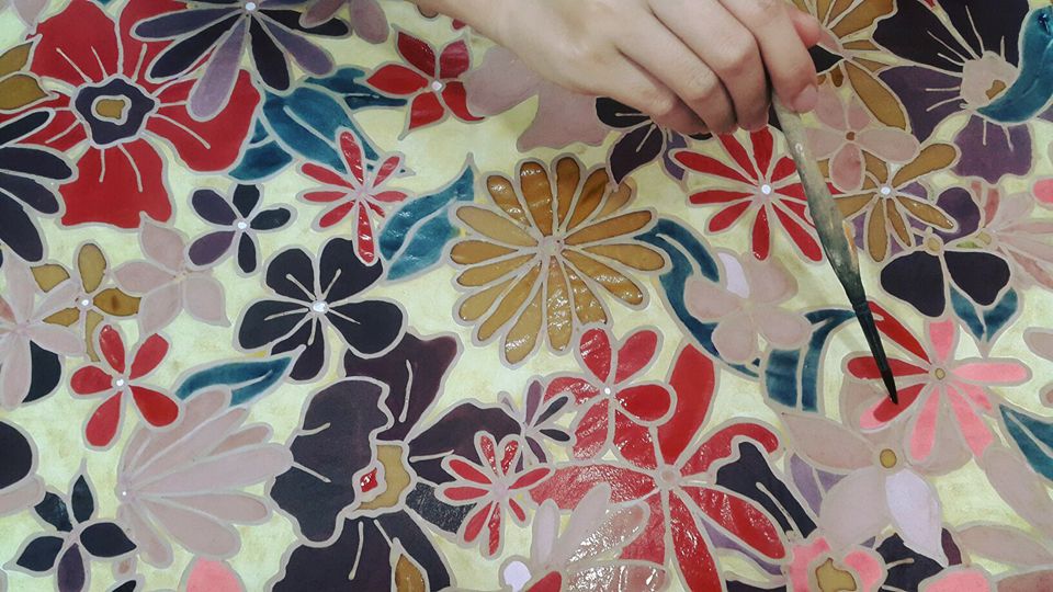 I learn that not all fabrics can be colored with natural dyes. The best fabrics to use are those made from natural materials like cotton and silk. There are several steps involved in creating a silk painting using natural dyes: for example, lightly transferring your design from paper onto the silk with a vanishing marker and outlining the design with gutta-percha – a natural latex - to keep the dyes from bleeding into each other. Dyes are then applied to the outlined areas just as you would paint with water colors. Painting silk with natural dyes requires proper technique and patience as well as inspiration. Designer Diep Yen, another workshop participant, says:“At this workshop I’ve discovered that painting on silk using natural dyes is different from what I had imagined. Unlike applying acrylic color to fabric, which is super easy, drawing with natural colors requires more experience and skill. You have to pay closer attention. Workshops like this one inspire people’s creativity while encouraging them to use environment-friendly materials.”
