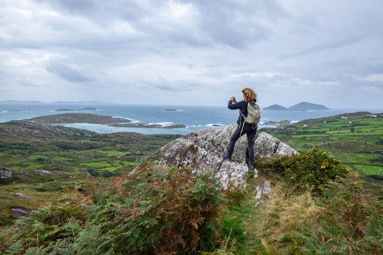 A woman snaps a photograph while hiking in the Beara Peninsula, Ireland (Source: Pinterest) |