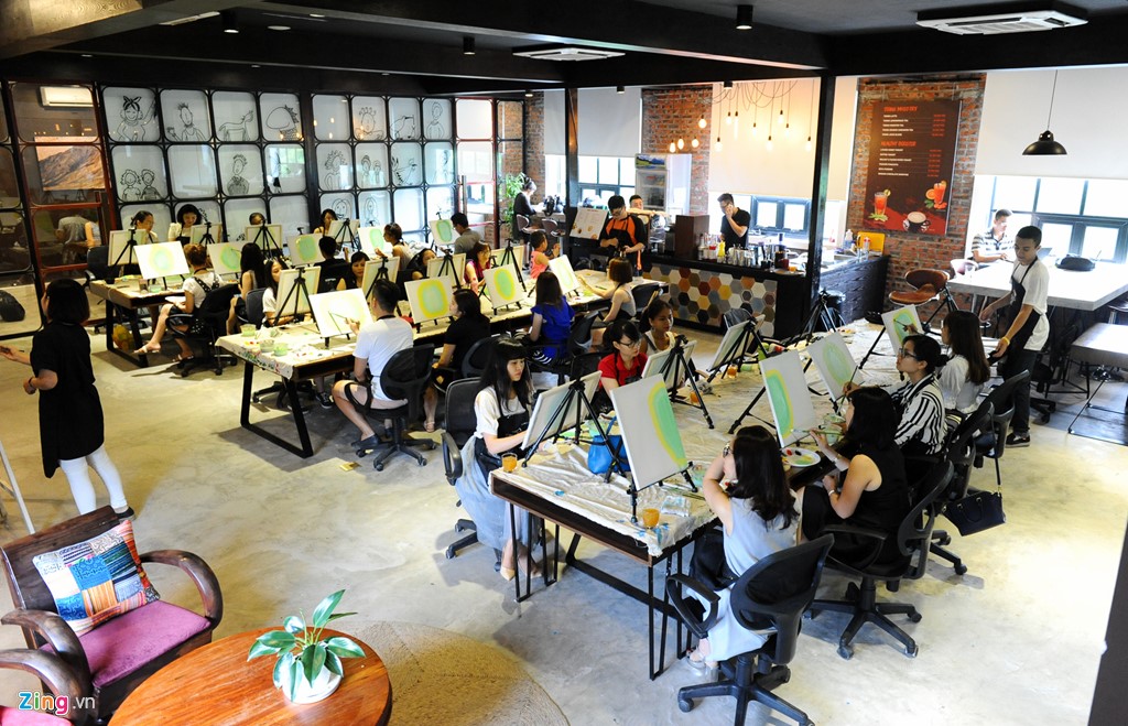 Established in December 2015 by three young and talented artists, Nguyen Thu Trang, Bui Thu Ngan, and Le Hoang, “Tipsy Art” is the first kind of painting class in Vietnam for people who have never painted before. Coming here, no experience or back-ground knowledge but fun is required. Participants will be instructed step by step by a group of artists to complete a painting. And the idea of creating masterpieces with a brush in one hand and a drink in the other is just so brilliant and creative. Art is now closer to the amateurs more than ever. Nguyen Anh Thu, Tipsy Art's general manager in Hanoi said: “We want to create an art space for everyone, especially young people, to show themselves off through painting. Here, at Tipsy Art, we don’t focus on painting techniques only. Participants in the workshop will be immersed in a beautiful art space, while enjoying delicious drinks and having fun with new friends who share the same passion and enthusiasm for painting. The workshops will be held at different venues in Hanoi, usually coffee shops with delicious drinks and which have quiet and beautiful spaces. The locations will be changed regularly as we know that painting needs creative space and a lot of inspiration.”