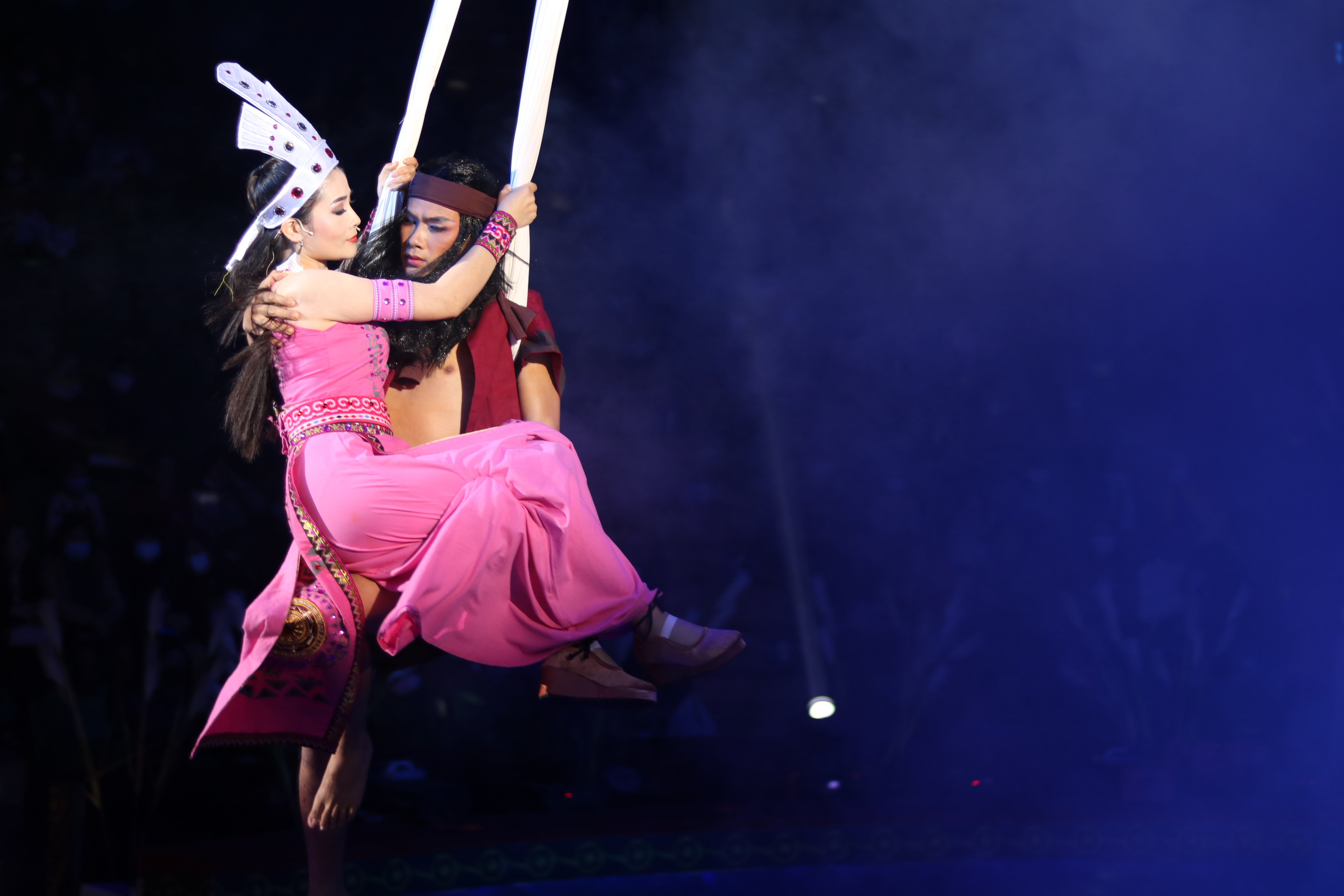 The two leads sing while flying. (Photo: Vietnam Circus Federation)