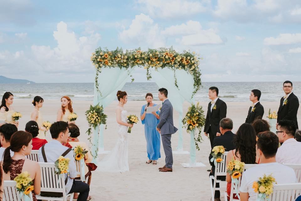 A wedding planner is basically an event coordinator. After discussing ideas, concepts, and budget details with the bride and groom, the planner reaches out to make up artists, photographers, venue owners, decorators, florists and so on. Their job is to make sure every part of the wedding blends smoothly with every other part, so the lovebirds can enjoy to the utmost their special day. Hoang Anh’s typical day involves lots of emailing back and forth and meeting with vendors. With sufficent cooperation, wedding planners are confident they can fulfill the bride and groom’s wishes no matter how extravagant. Dinh Thi Thach Bich of Hanoi decided to use Hoang Anh’s service for a very specific reason: “We decided to go for a wedding planning service because my husband is Australian, and he was staying in Canberra while I was living in Hanoi. We chose Da Nang as our wedding destination, which is faraway from both Australia and Hanoi. So we thought that engaging a wedding planner could definitely help reduce the stress we had to face during wedding preparation.”