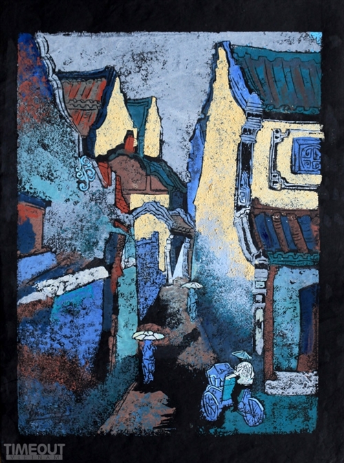 | Hoi An blues: Night in Hoi An, a painting by Tran Nguyen Đan (Photo: Truong Vi) |