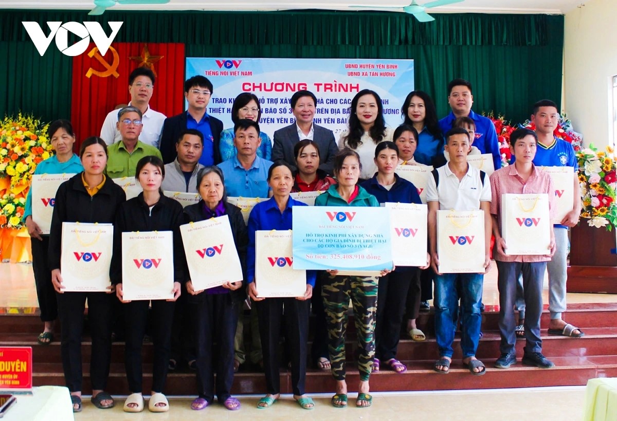 Ngày 27/3, tại xã Tân Hương, huyện Yên Bình, tỉnh Yên Bái, Đài Tiếng nói Việt Nam (VOV) phối hợp với các nhà tài trợ tổ chức trao tặng kinh phí hỗ trợ xây nhà ở cho các hộ gia đình bị thiệt hại bởi cơn bão YAGI (tháng 9/2024).