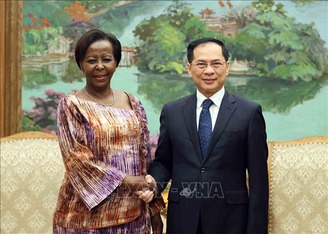 Phó Thủ tướng Bùi Thanh Sơn tiếp Tổng Thư ký Pháp ngữ Louise Mushikiwabo. Ảnh: An Đăng/TTXVN |