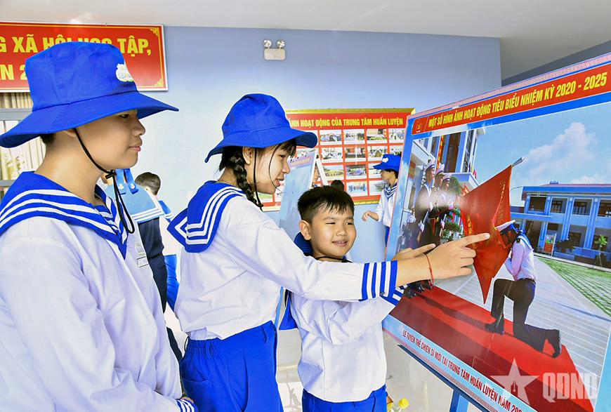 Các bạn trẻ thích thú, quan tâm tìm hiểu những hoạt động tiêu biểu của Hải quân nhân dân Việt Nam trong quản lý, bảo vệ chủ quyền biển, đảo. Ảnh: qdnd.vn |