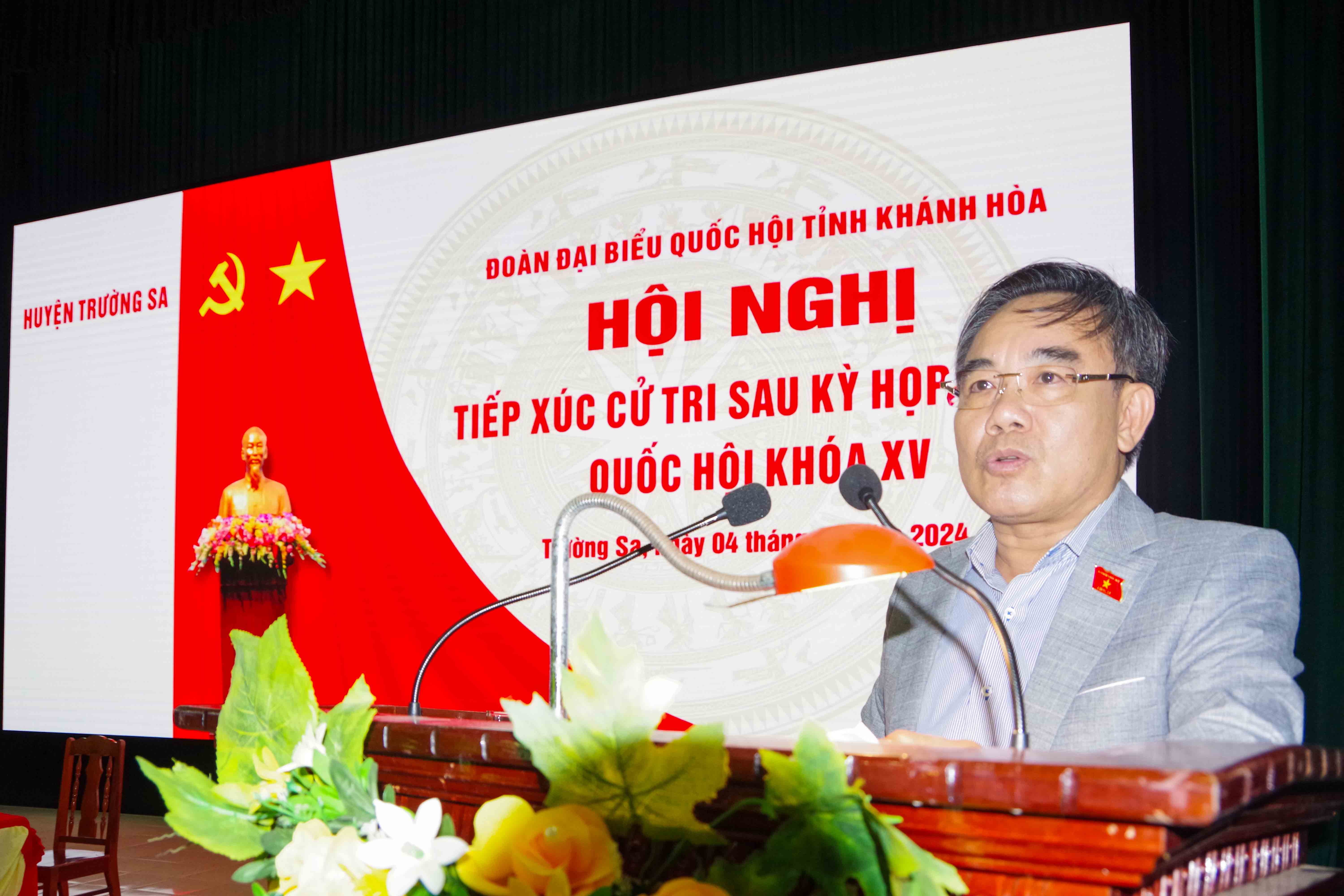Ông Lê Hữu Trí, Phó trưởng đoàn chuyên trách đoàn đại biểu Quốc hội tỉnh Khánh Hòa, tiếp xúc cử tri huyện Trường Sa sau kỳ họp thứ 8. Ảnh: baohaiquanvietnam.vn