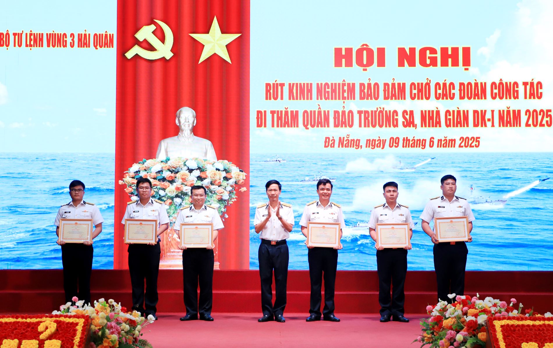 Ngày 9/6, tại thành phố Đà Nẵng, Vùng 3 Hải quân tổ chức hội nghị rút kinh nghiệm bảo đảm đưa, đón các đoàn công tác đi thăm, kiểm tra huyện đảo Trường Sa (tỉnh Khánh Hòa) và Nhà giàn DK1 trên thềm lục địa phía Nam của Tổ quốc.